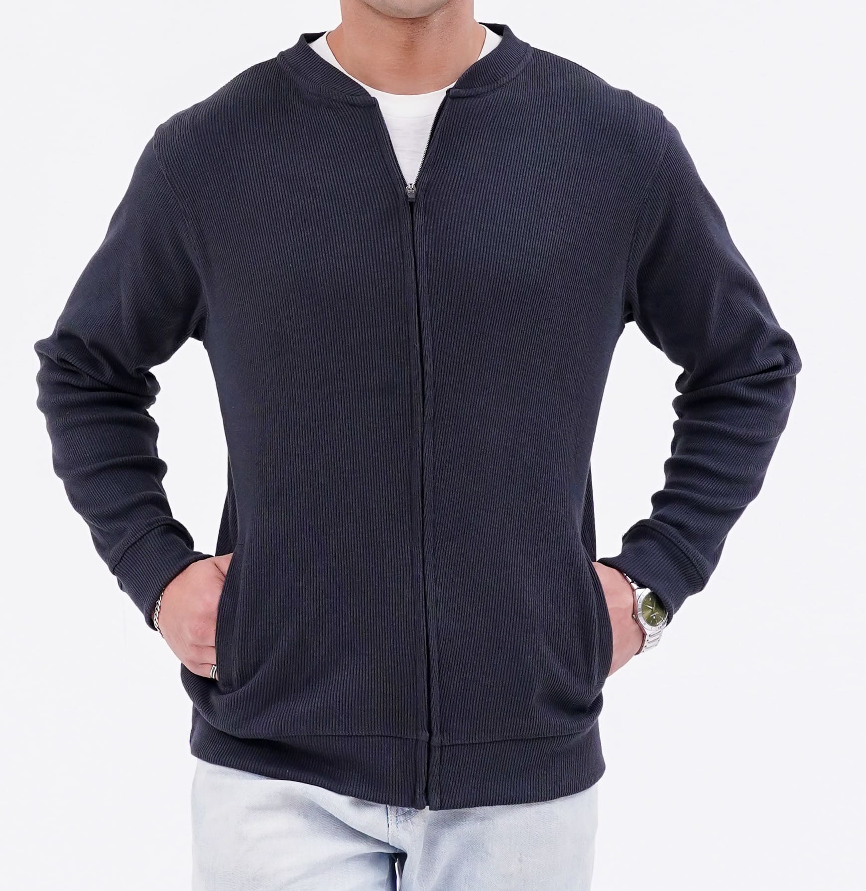 The sophisticated Ribbed Knit texture adds visual depth and luxurious feel without being overly busy, ensuring it remains a versatile, timeless addition to any wardrobe. The full Zip Up design offers maximum layering flexibility—wear it open over a tee for a casual look, or zip it high for a warm, comfortable neck coverage on brisk days.